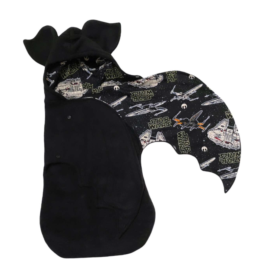 We recomment wrapping newborns and 3-6 months in a light gauze swaddler blanket (not included) prior to placing into the bat swaddle blanket. This will keep the batty baby soothed and comfortable