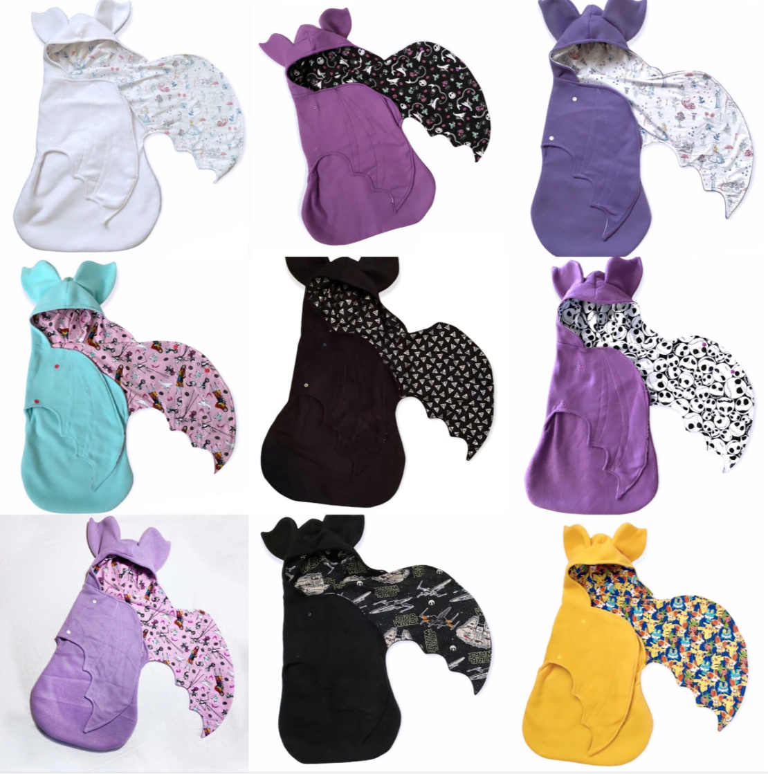 Custom color fabric bat swaddle blanket in 6-9 months