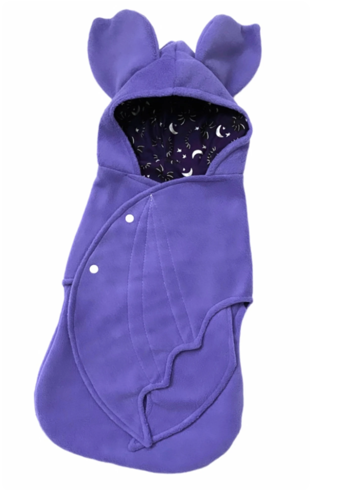 We recomment wrapping newborns and 3-6 months in a light gauze swaddler blanket (not included) prior to placing into the bat swaddle blanket. This will keep the batty baby soothed and comfortable
