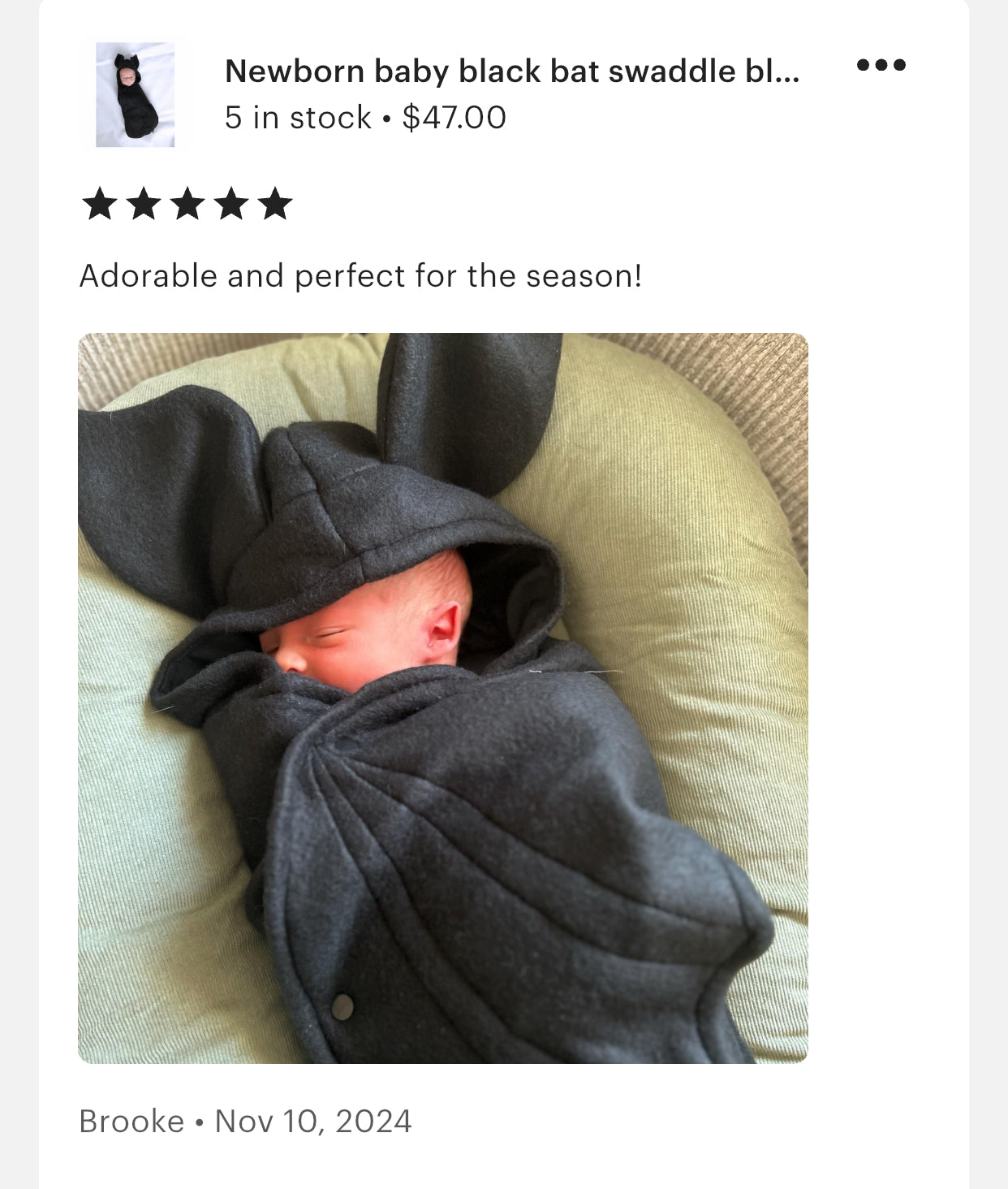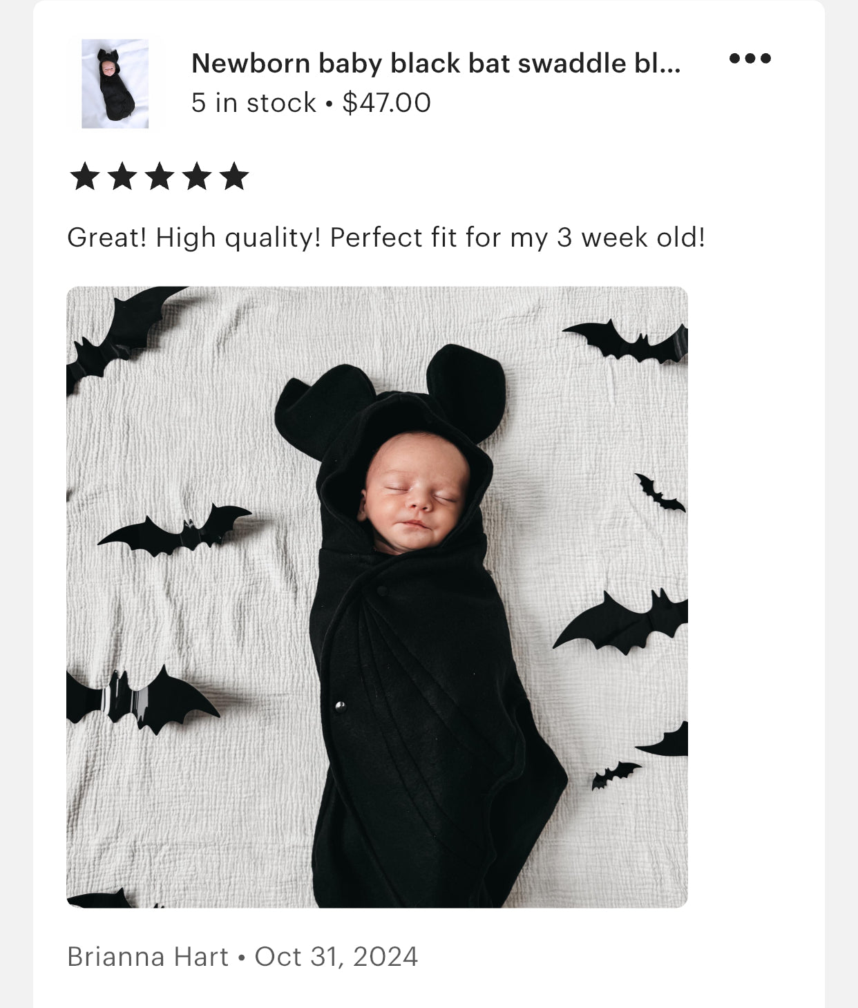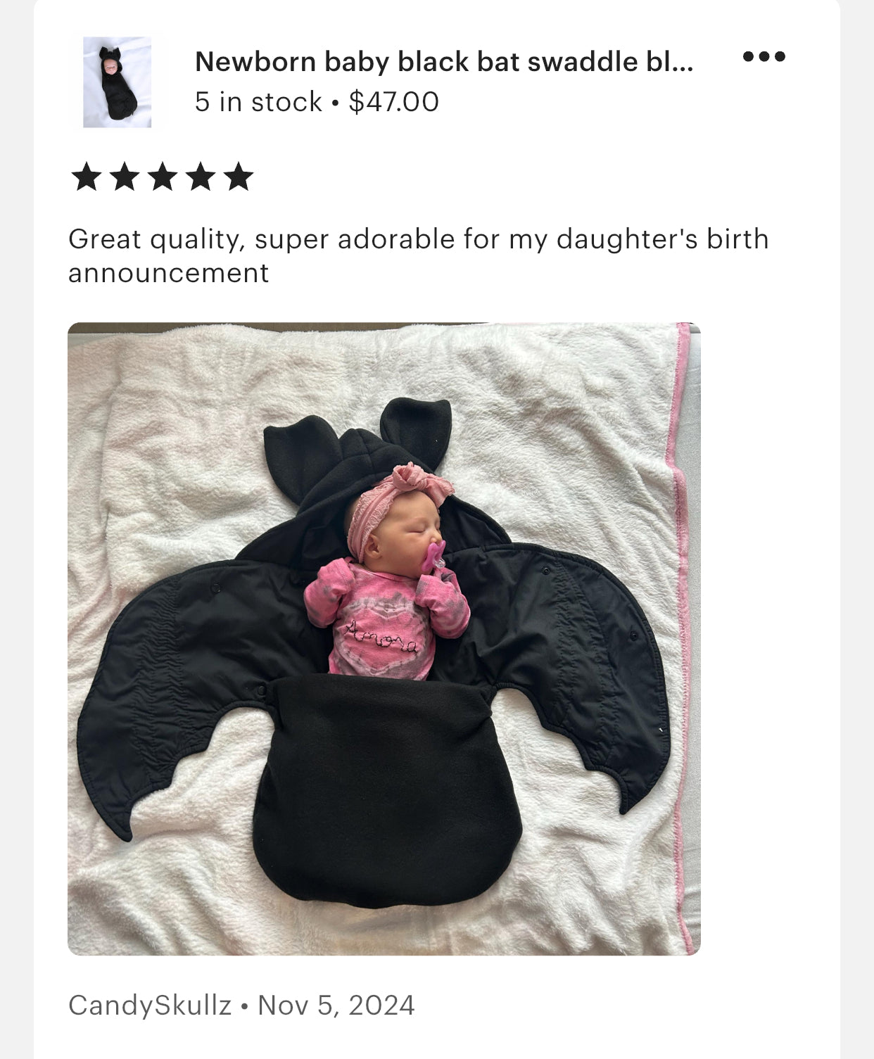 We recently had our bat swaddler design stolen and sold wholesale from china! Thank you for being aware of these knock offs and purchasing the Original baby bat wrap from the creator!!